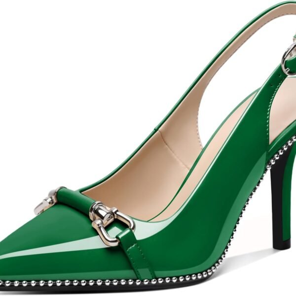 Kitten Heels for Women Pointed Toe Slingback Heels Closed Toe Wedding Dress Pumps with Buckles