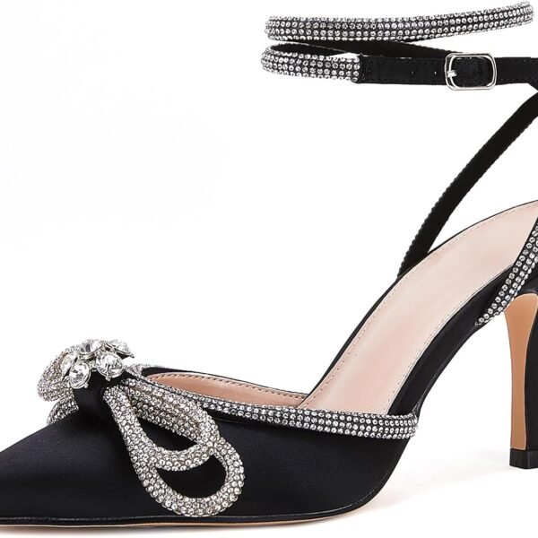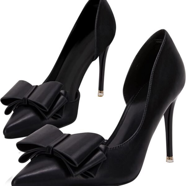 Women Bow Heels Closed Pointed Toe Dress Shoes Stiletto Slip on Wedding Pumps