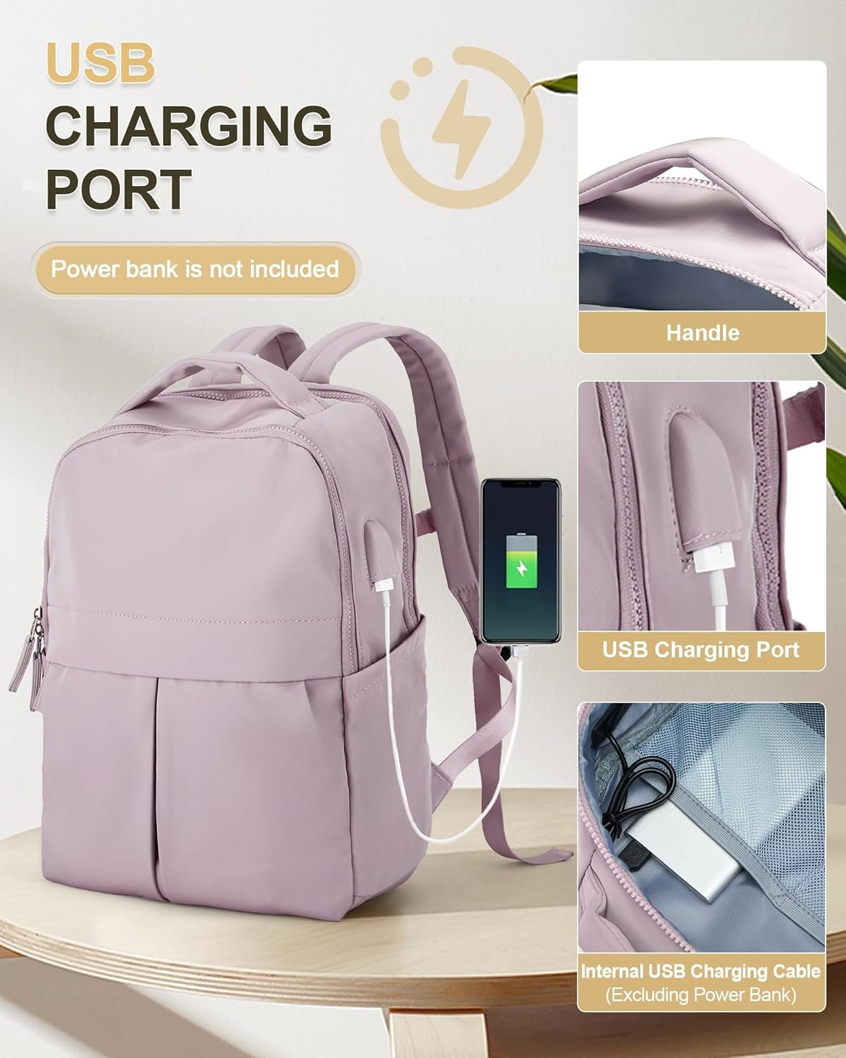 - Charging port: Laptop backpack is designed with a port on the side for connecting to the charging cable. You can connect the mobile power through this port to charge your mobile phone or other electronic products when walking or riding a bicycle, providing convenience for long Time travel.