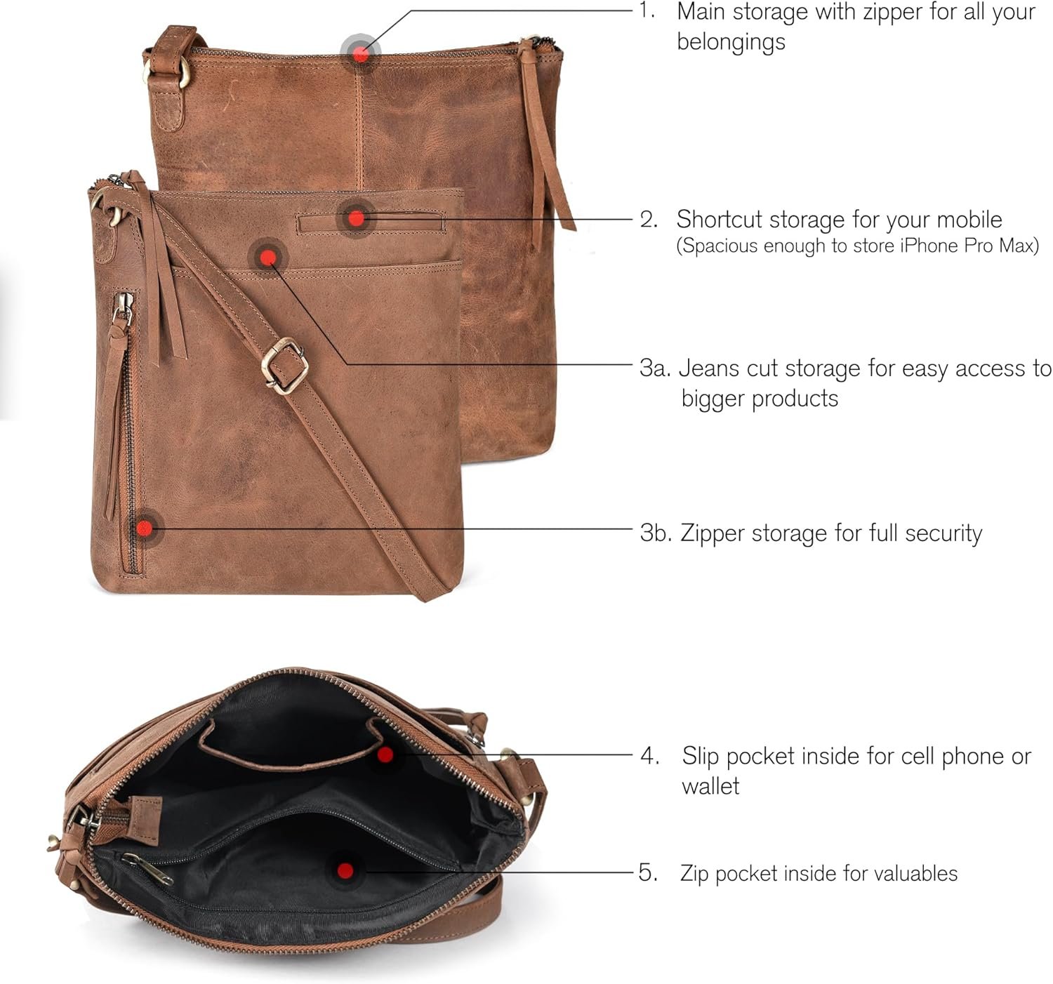 - Versatile Daily Companion: Achieve the perfect blend of durability, design, and utility with our leather crossbody sling bag – a small cross body bag that accommodates all your daily needs.