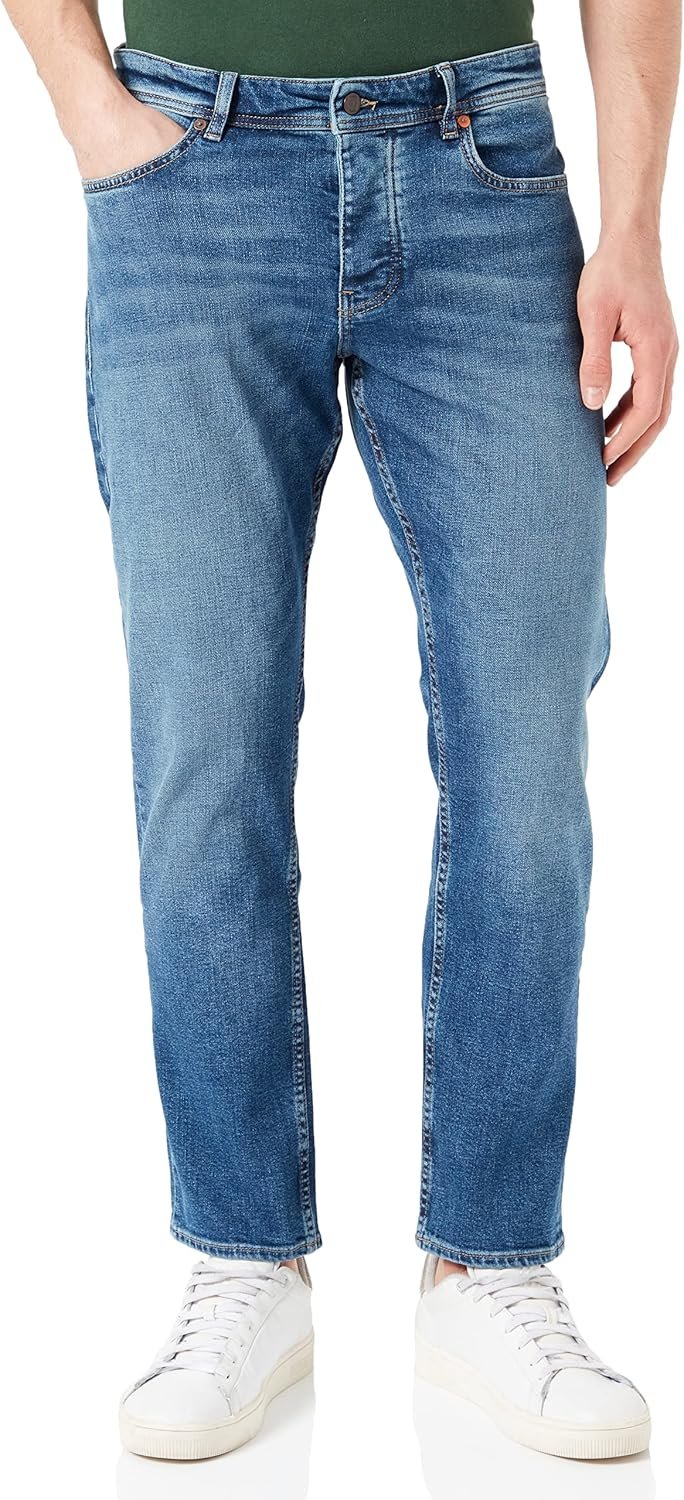 men Blue Tapered Fit Jeans in Comfortable Stretch Denim