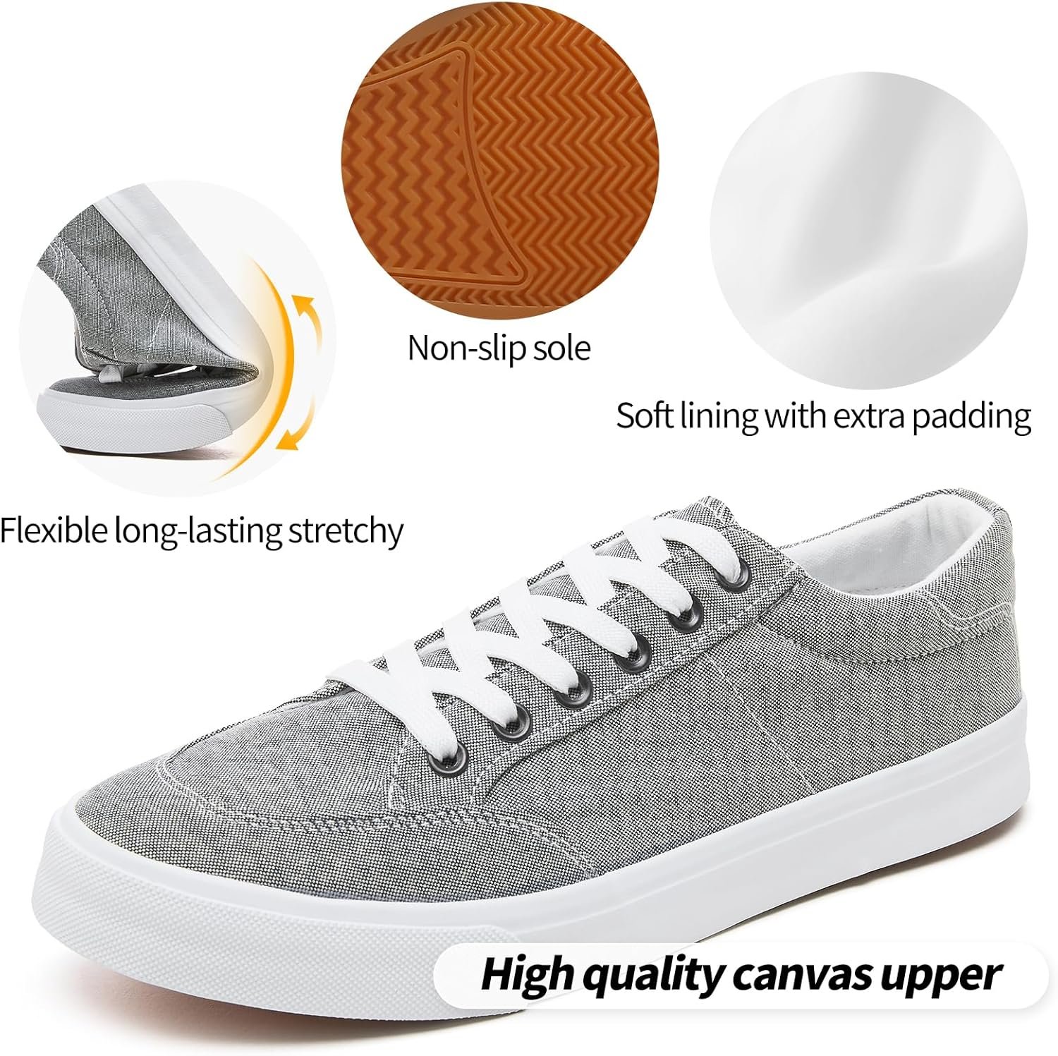 - NON-SLIP OUTSOLE – These canvas shoes for men feature a slip-resistant sole for enhanced stability in slippery conditions and boast long-lasting, wear-resistant qualities for lasting comfort. The textured sole provides added traction for an extra layer of safety.