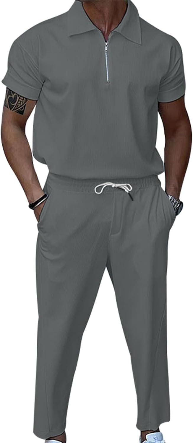- TWO PIECE SET: Our casual set consists of a quarter zipper lapel short sleeve shirt and a pair of loose elastic waist drawstring casual pants, the set is designed to minimize your outfit matching hassle while dressing more stylishly. You can wear the set directly or with a separate top or pants, both are very stylish.