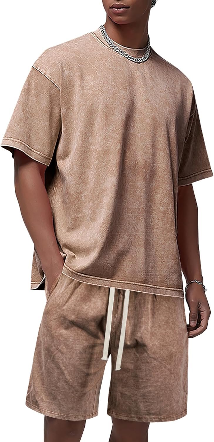- Material — 100% Cotton, Skin-friendly and breathable fabric, 240G mid weight tank tops & 290G heavy weight distressed drawstring pants, solid washed vintage color