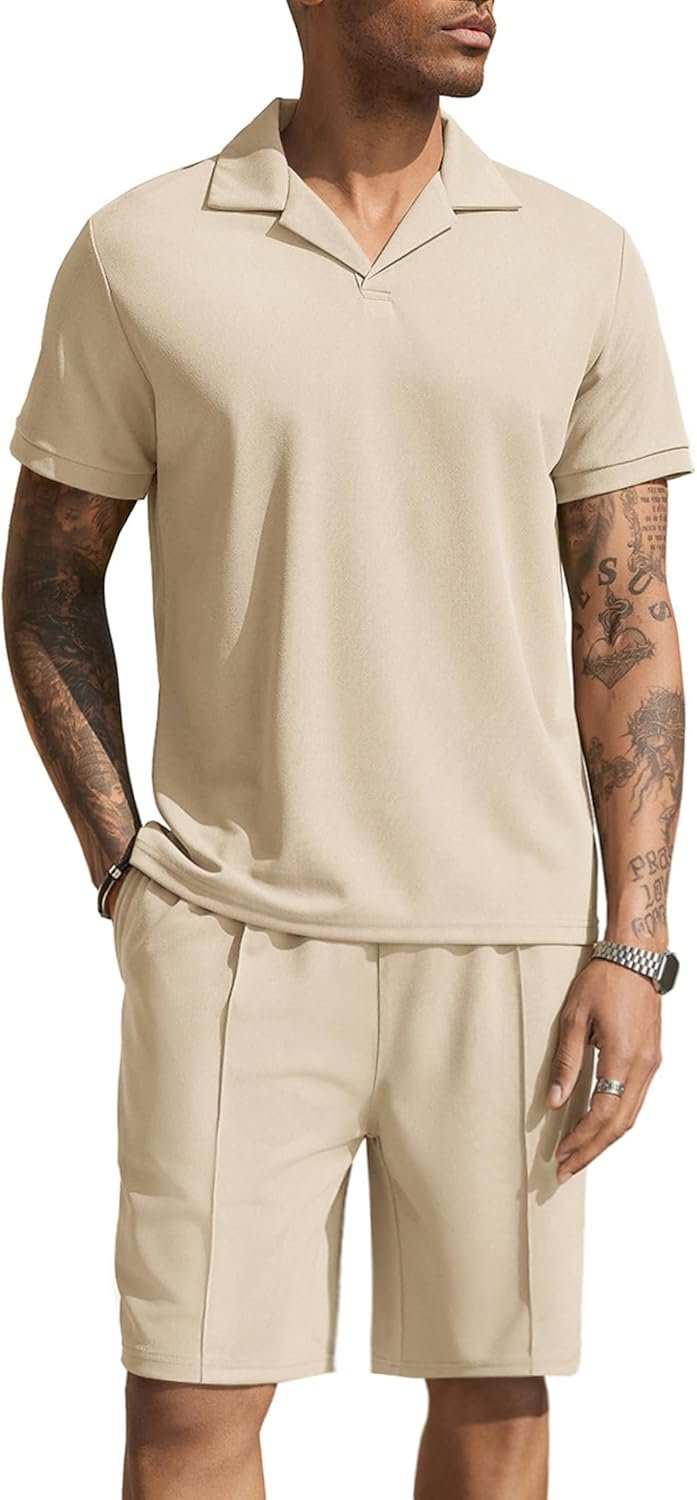 - Matching: Mens short sets 2 piece outfits are crafted to give you a fashionable look and a casual fit. This short sleeve summer tracksuit are easy to match with a baseball cap, some sunglasses, and a watch or bracelets. Also can wear separately.