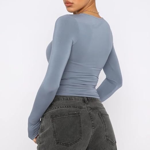 • Features: Fashion and casual design. Solid color, long sleeve, slim fitted, crew neck shirt tee. Basic tight skinny tee top blouse, show waist cropped streetwear clothes.