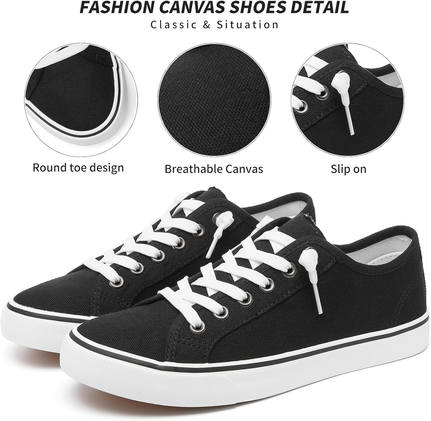 • 【Lace up&Slip on Design】You can adjust the LACES to make them fit your feet better and add comfort. If you feel the slip on canvas shoes are too loose, tie the LACES down. If the canvas shoes are too tight, tie them up.