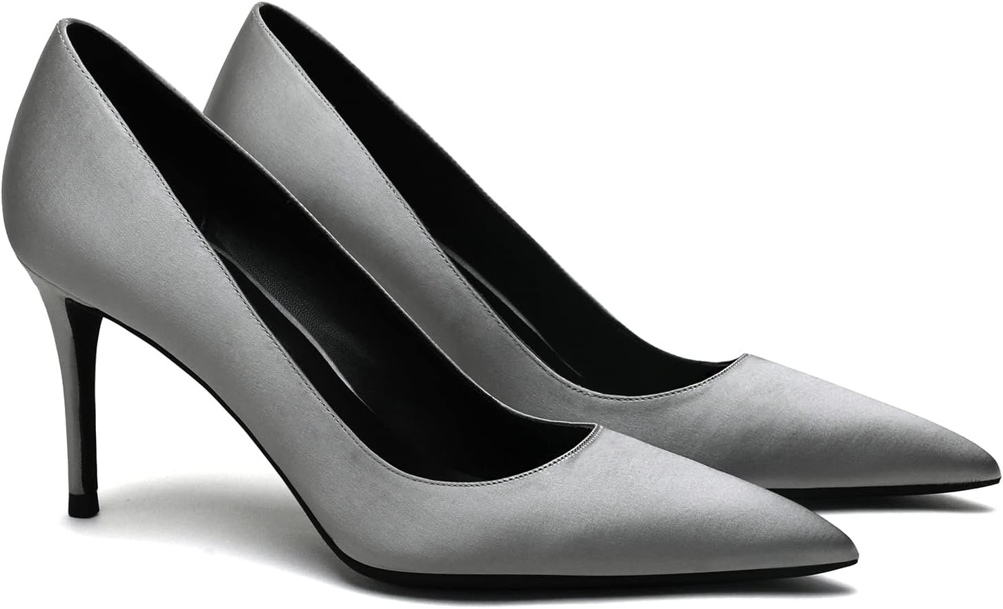 • ♡♥♡ SATIN HIGH HEEL POINTED TOE PUMPS SHOES FOR WOMEN SEXY:Classic high heel pumps pointed toe for party wedding office are in a Classic Stiletto Pointed Toe style. 3 inch/8cm stiletto heel of these women’skitten heel pointed toe dress shoes not only ensures your Daily Work, Gatherings occasion needs, but is not too high to increase the burden of walking & difficulty of wearing. Slip on satin pumps heels choose matte, patent, satin & suede fabrics to meet your different needs.