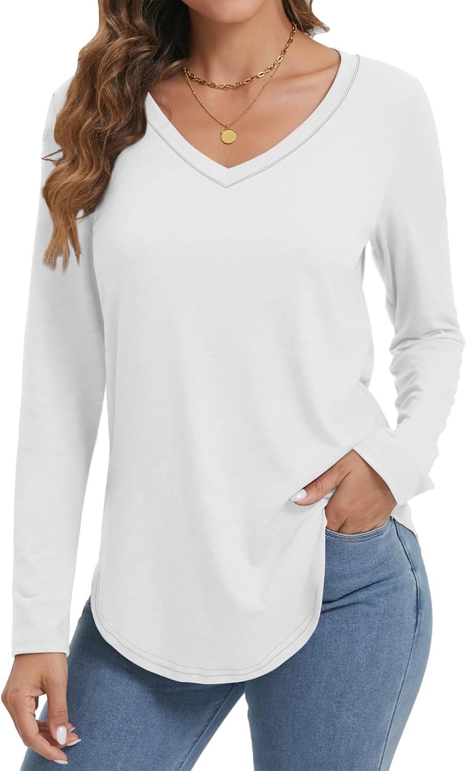- Basic bottoming blouses with sexy v neckline, loose fit, solid color, long sleeve, casual daily wear all seasons.