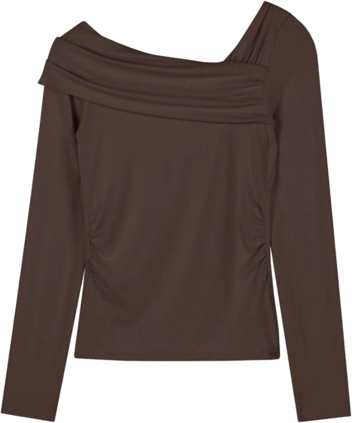 - Women’s Fashion T-Shirts One-Shoulder Long-Sleeve Solid Color Bottoming Shirt Slim Temperament Thin Graphic Camisole Leopard Short Running Prom Soft