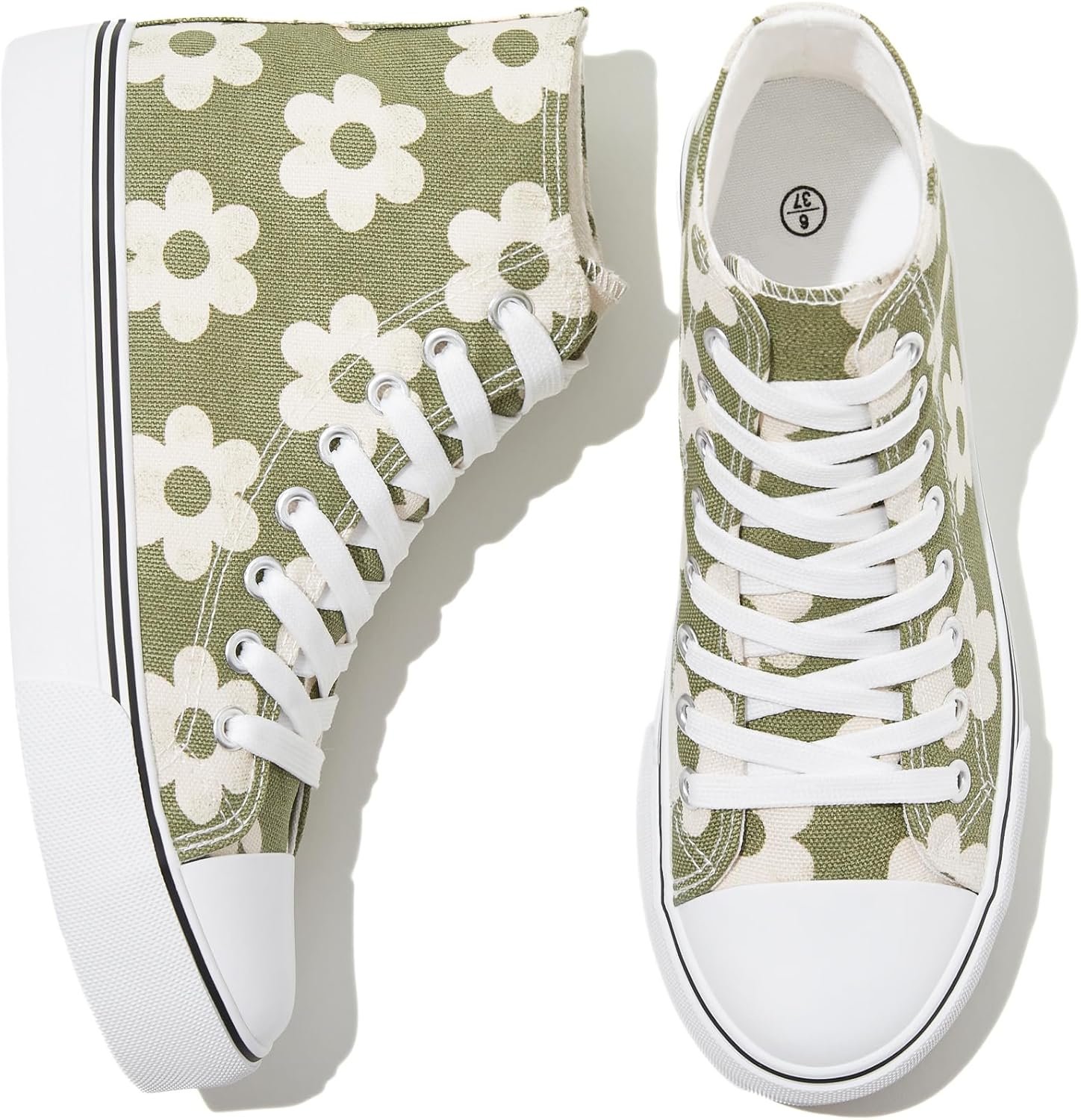 - GO WITH ANY DECORATION- Classic white base color lets these high top shoes go with any kind of clothes, like jeans, shirts, sweaters, etc. Just any decoration you can imagine