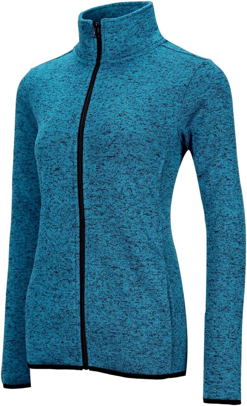 Women Long Sleeve Sweater Fleece Zip Up Speckled Jacket with Pockets