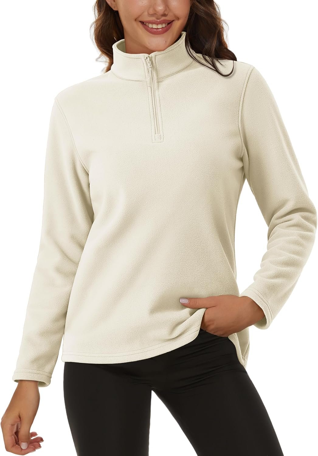 Women Quarter Zip Pullover Polar Fleece Sweatshirts Lightweight Stand-Collar Jacket Warm Tops