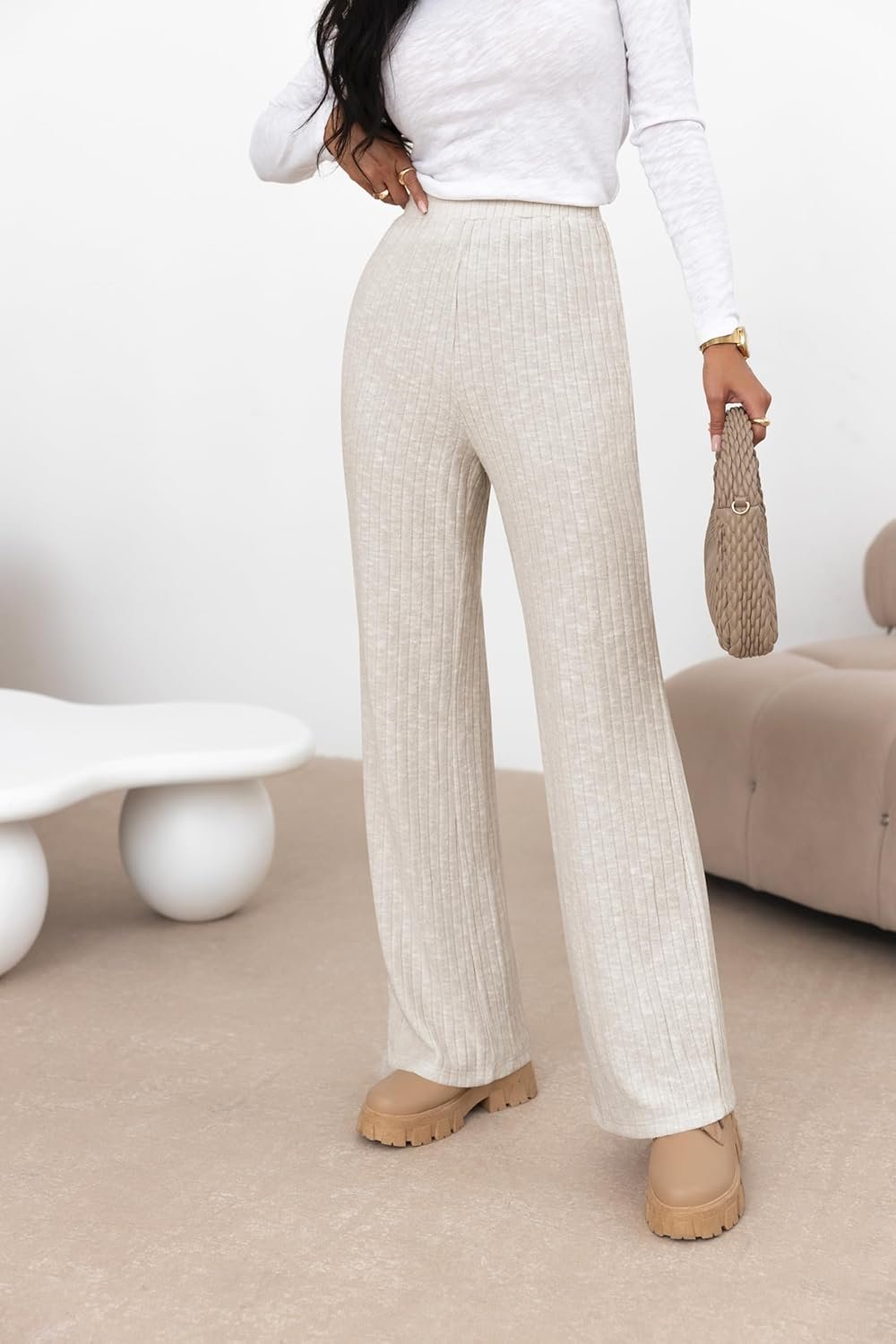 • Womens Pants/ Wide Leg Pants/ Ribbed Knit Pants/ Straight Leg/ Elastic Waist/ Sweat Pants/ Palazzo Pants For Women/ Soft And Lightweight Fabric / No Lined / Casual Office Pants For Women/ Stretchy Breathable Material / For Spring, Summer, Fall, Winter /