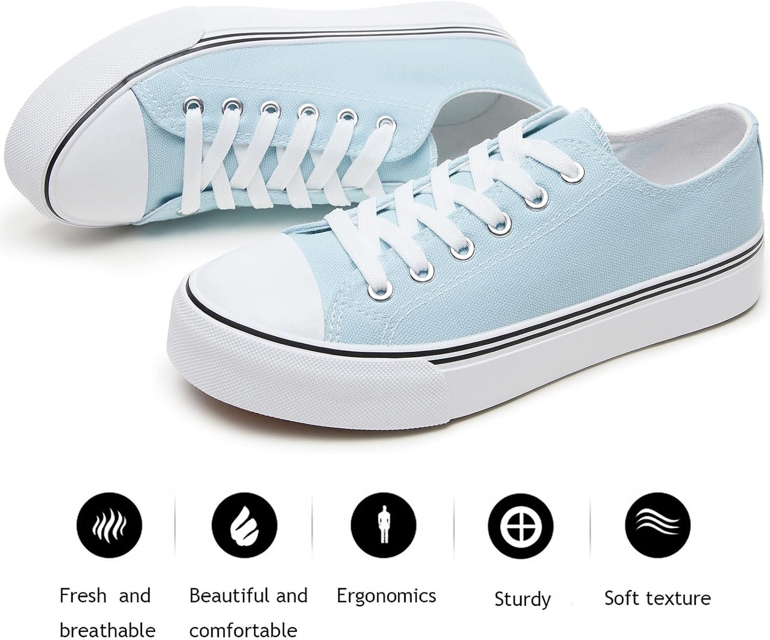 - 【Non-Slip Sole】: Women white canvas shoes use non-slip sole prevent from slipping,so you can walk even slippery surfaces.